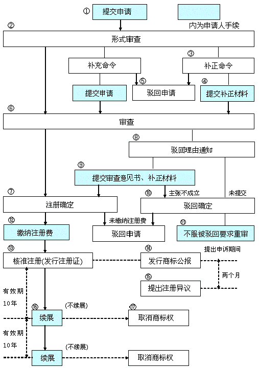 (16)核準(zhǔn)注冊日起10年后,可辦理有效期續(xù)展手續(xù)。(有關(guān)手續(xù)期限請參見〈續(xù)展〉)